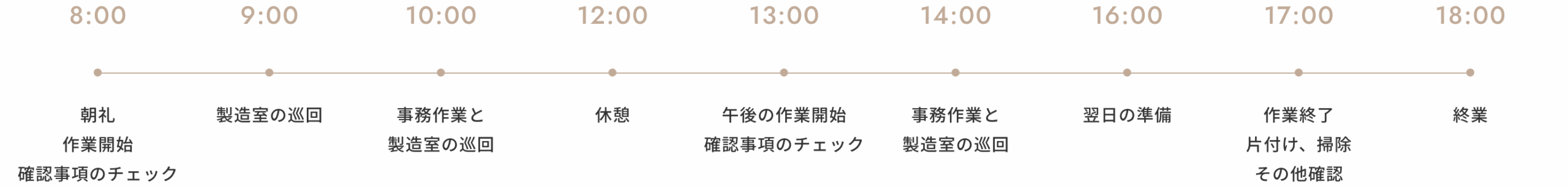 前職まではお菓子を作ることが中心でしたが、現職ではマネジメント業務がメインになっています。スタッフのスケジュール管理や作業の進捗確認、品質チェックなど、業務の幅が大きく広がったことで、自分自身の視野も広がったと感じています。また、多くの外国の方々と一緒に働くのは初めての経験で、文化や習慣の違いに触れながらコミュニケーションの工夫が必要な場面も多くあります。その分、新しい学びや気づきが毎日あり、チーム全体で成果を出す喜びも大きく、やりがいを日々実感しています。